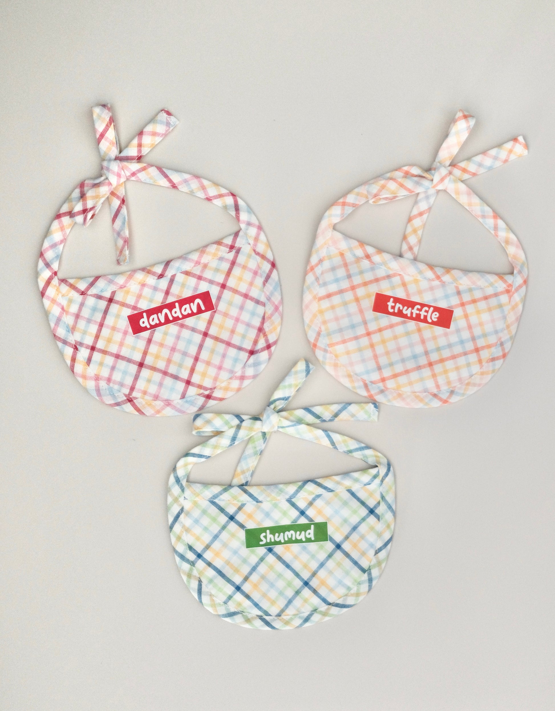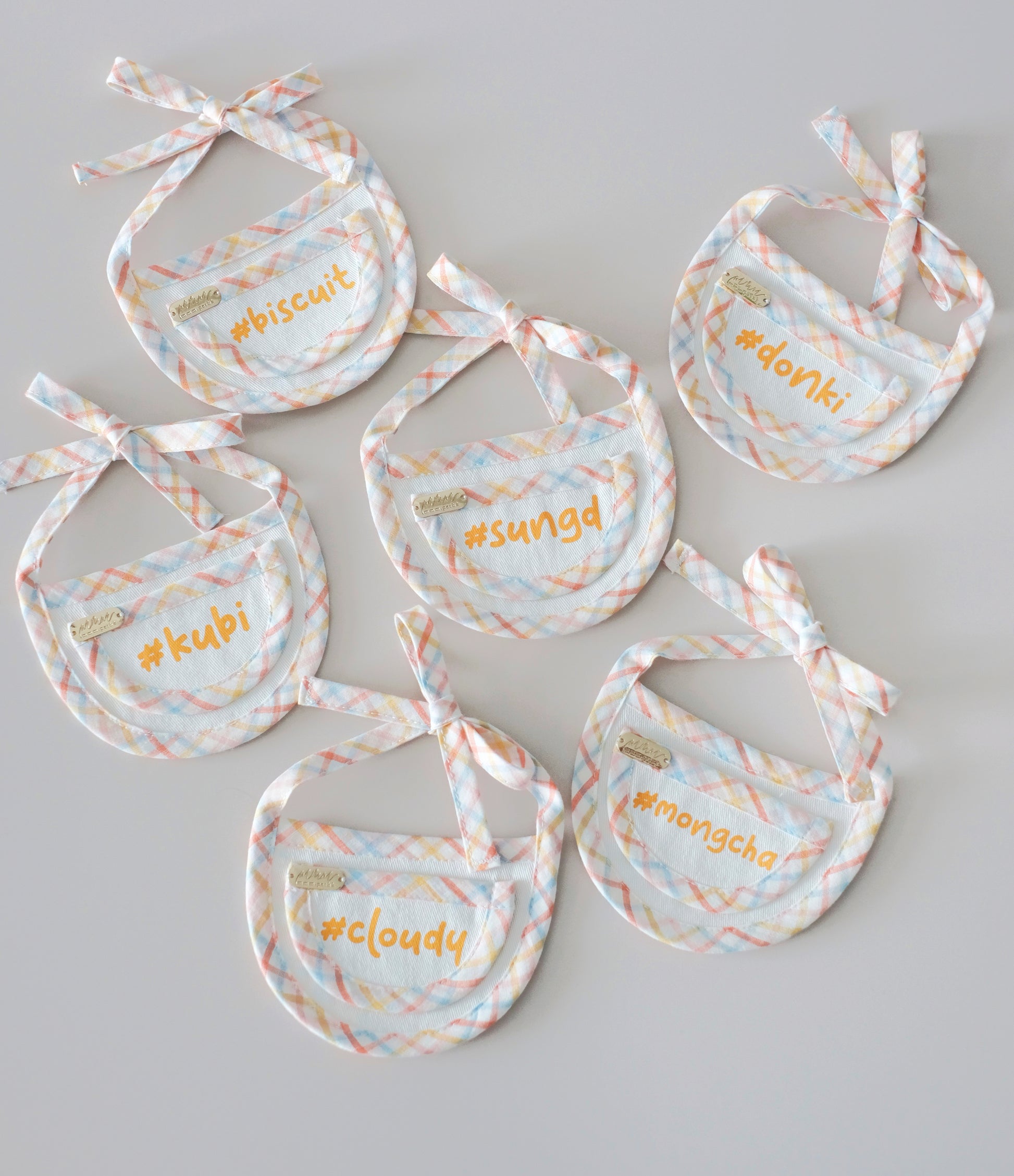 設計以柔和粉紅、黃與藍色調搭配可愛格紋,溫馨中展現毛孩的獨特魅力。可雙面使用,隨時切換不同面貌,為毛孩增添每日新鮮感。